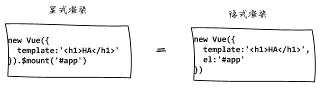如果Vue.js檢測到你指定了el配置項(xiàng),將在內(nèi)部自動(dòng)地執(zhí)行渲染 —— 這時(shí)你不再需要額外調(diào)用$mount()方法了:
