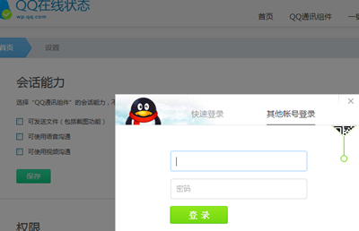 2、對應(yīng)的QQ到這個網(wǎng)站里面登錄一下http://wp.qq.com/set.html 出現(xiàn)如下界面,填寫你需要啟用在線客服的QQ號碼和密碼后登錄