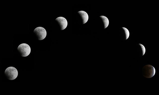 2018年1月31日:月全食(初虧19點47分,食甚21點30分,復(fù)圓23點10分)全食階段持續(xù)1個多小時。